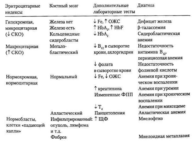 Таблица 135-6 Дифференциальный диагноз микроцитарной гипохромной анемии